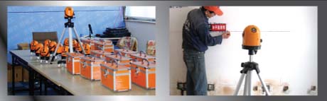 現(xiàn)全面配備激光水平儀,對施工現(xiàn)場進行精確勘測,并采用精確放線標示進行細致標注,使用精細施工有據(jù)可依。