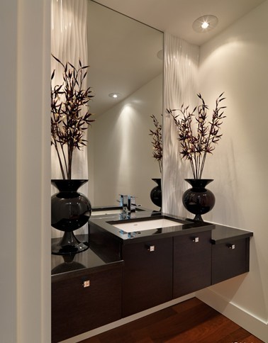 ▲在衛(wèi)浴間中很多空間都被忽略了,比如浴室柜門后的空間也可以很好的利用起來。柜門背后增加兩個木質(zhì)收納架用以存放洗浴用品,這樣一來,外立面空間就顯得非常的整潔,使用的時候也更方便。