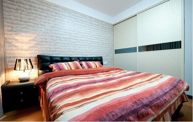 設(shè)計說明:本案是以簡潔明快的設(shè)計風格設(shè)計的一個平層居室。在功能方面,客廳是娛樂交友中心,影視墻采用了墻磚,既大方又氣派。地面選用了富有彈性,導熱率低與電視背景墻相似的木地板,更顯現(xiàn)代氣息。在組合上注意空間搭配,充分的利用了每一寸空間,且不顯局促又不失大氣。在選色上,一般選擇自然的柔和色彩,集裝飾與應用與一體,讓人處處感到浪漫主義氣息。