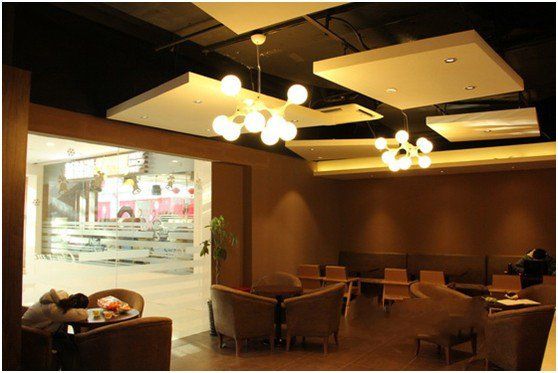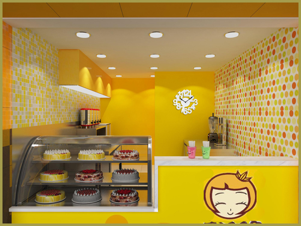 色彩不僅運用在整體店面裝修設計上,如氣氛的渲染,而且在甜品展示柜柜臺展示上,一定要注意運用。一般情況下,喜歡甜品的多以婦女兒童居多,所以一般甜品店的裝修色調都以健康明朗輕快的暖色調為主,所以要從這些方面多下些功夫。